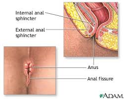 * This is a cut (ulcer or laceration) inside the anus. The usual cause is Trauma to the anus because of a strained bowel movement, a hard bowel movement, or high internal sphincter tone (the area that allows stool to pass stays too tense to allow proper passage).